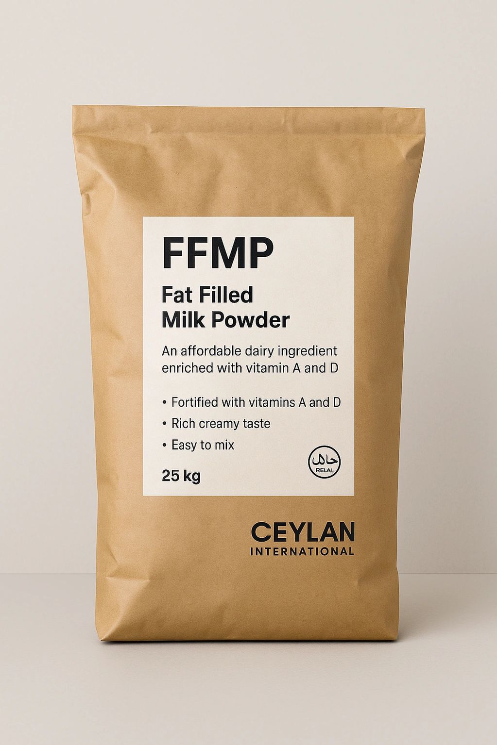 Fat Filled Milk Powder (FFMP) – Instant is a cost-effective alternative to full cream milk powder. Produced from skimmed milk, demineralized whey and vegetable fat through spray drying technology, it delivers excellent performance across a wide range of applications. It offers an affordable and nutritious dairy option for families and industries that seek a lower-cost substitute to full cream milk
